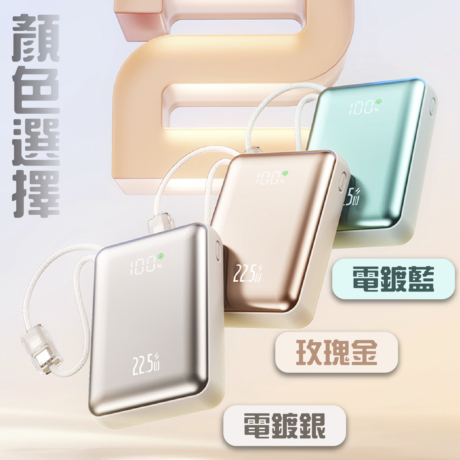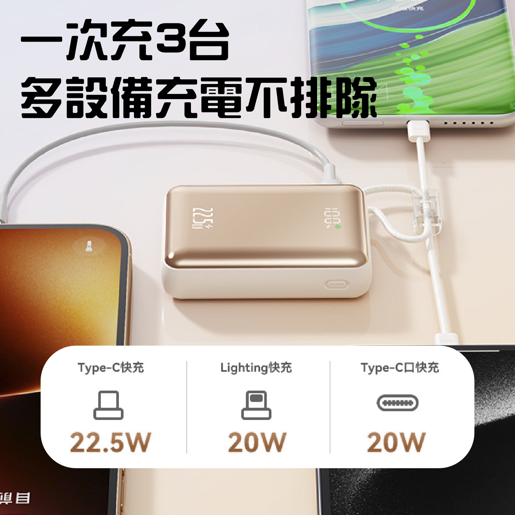 快充自帶線行動電源