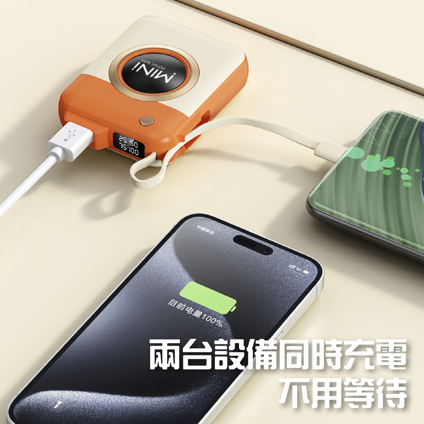 快速充電,可兩台設備一起充電。