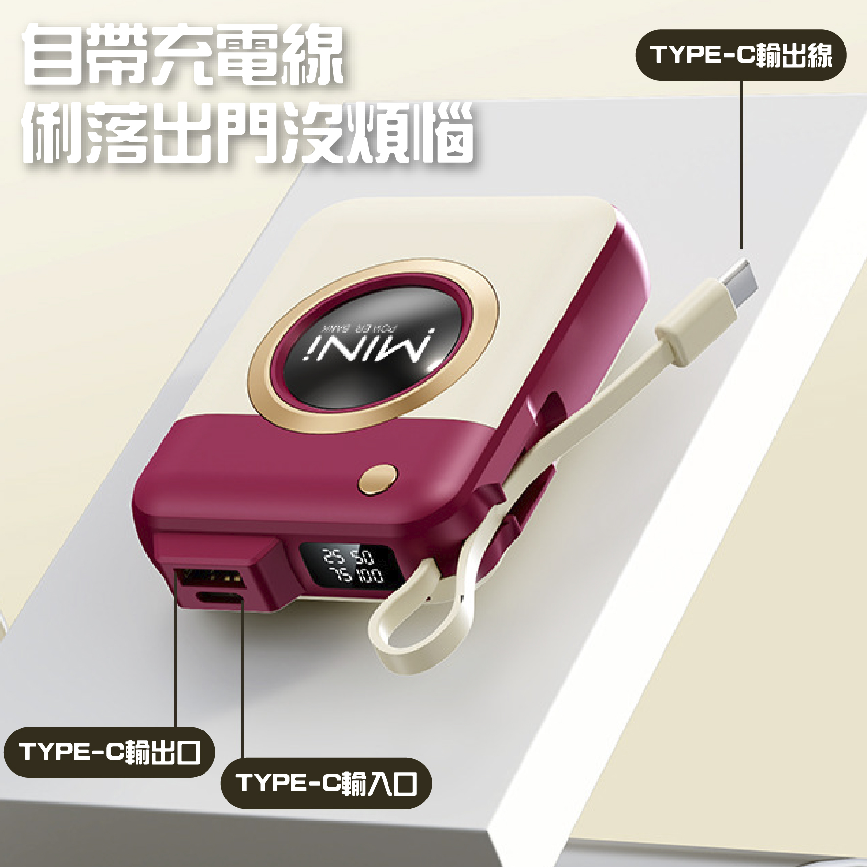 自帶充電線。
