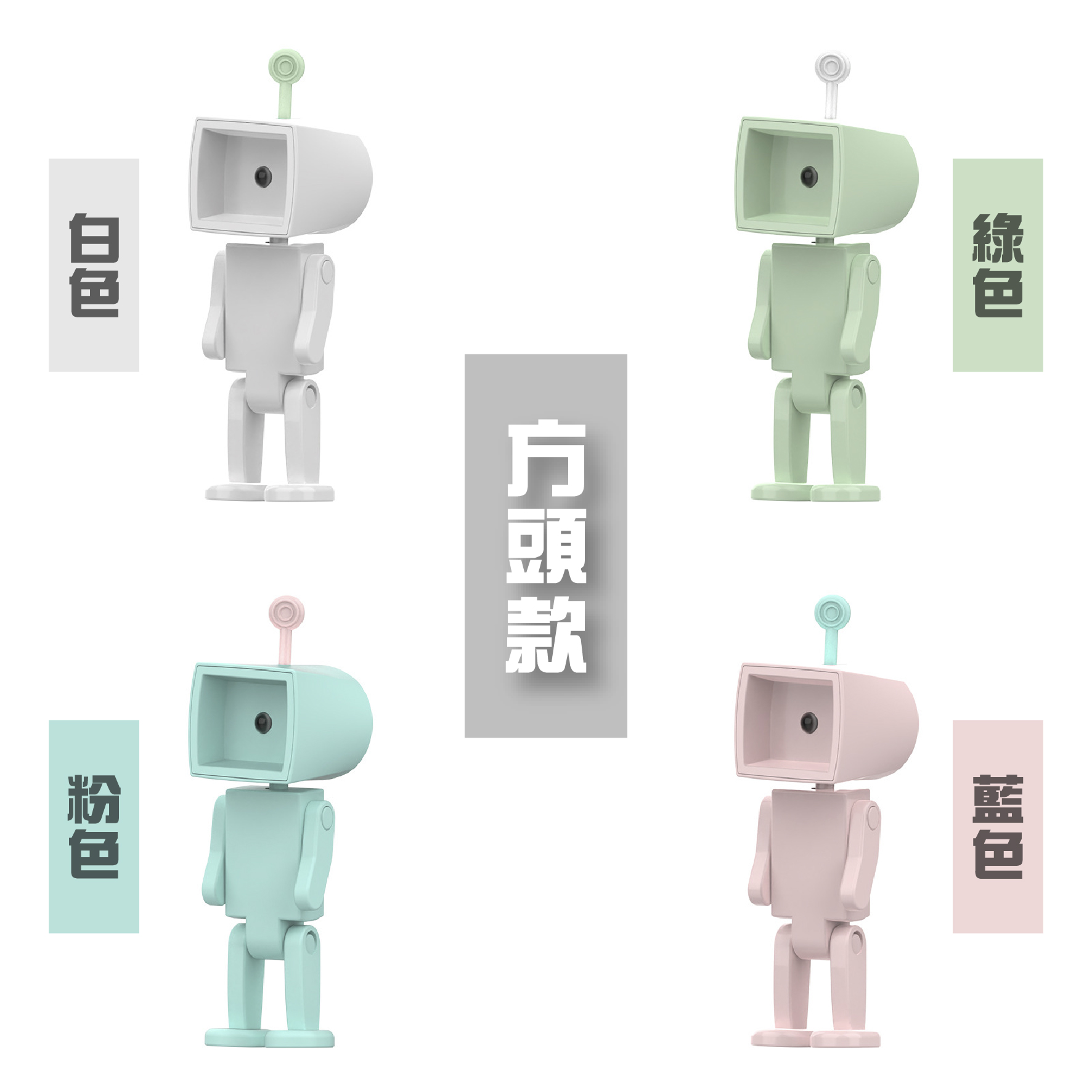 白、粉、藍、綠