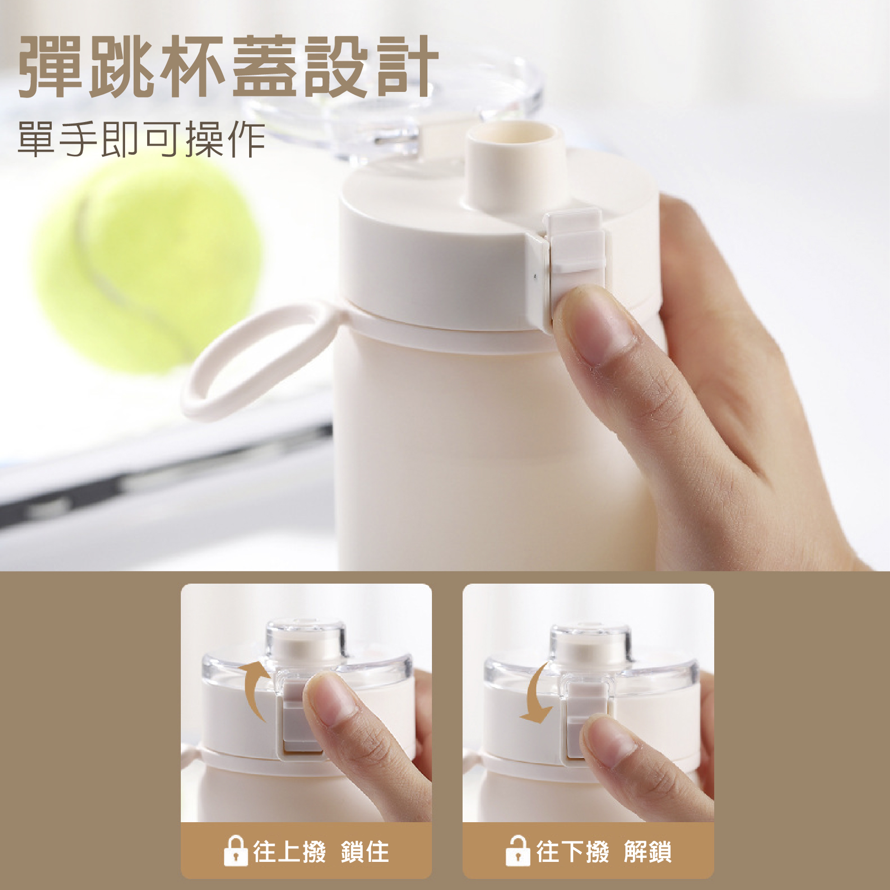 上撥鎖住,不怕誤觸開蓋、傾漏。