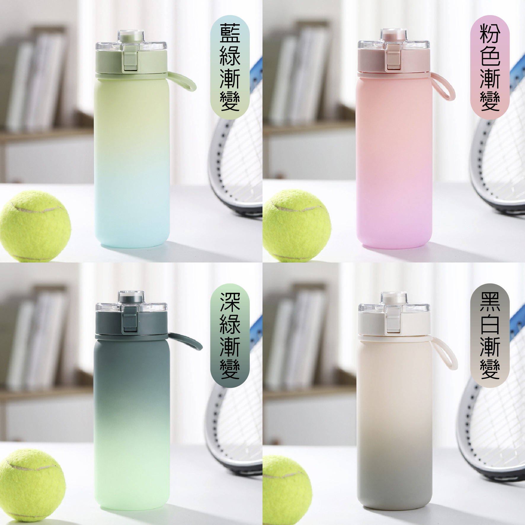 白黑漸變、淺綠藍漸變深淺綠漸變、粉色漸變